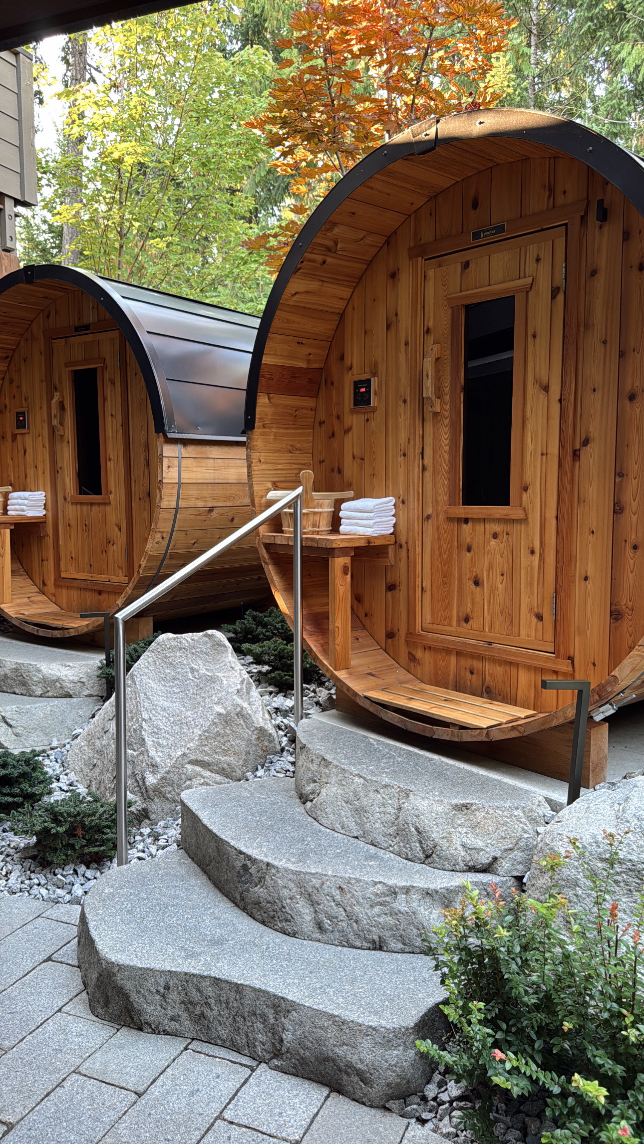 The next day we were booked at The Grotto Spa. On the itinerary: 2-hours at the Grotto, Copper Tubs & Couples Massages. We spent the morning swimming in the mineral pools & cycling through hot & cold pools inside the Grotto. The outdoor space was newly renovated, it’s gorgeous and entirely west coast. We ordered lunch from Treetop Tapas (amazing !!) and went in the cedar barrel saunas & cold showers while we waited.